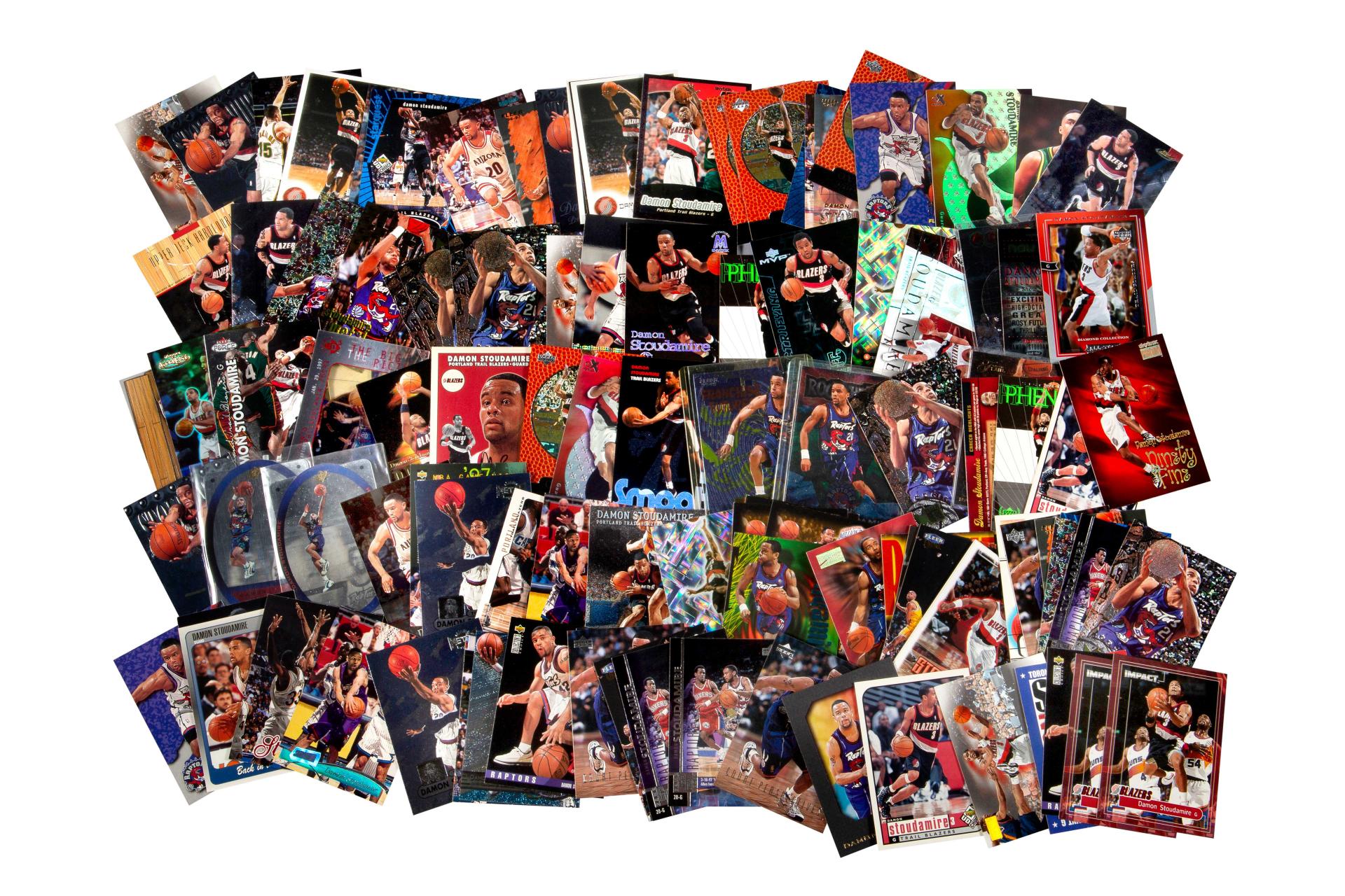 NBA : collection de cartes Damon Stoudamire années 90-2000. Toutes licences (Panini, Upper Deck, Fleer, Topps, etc.).