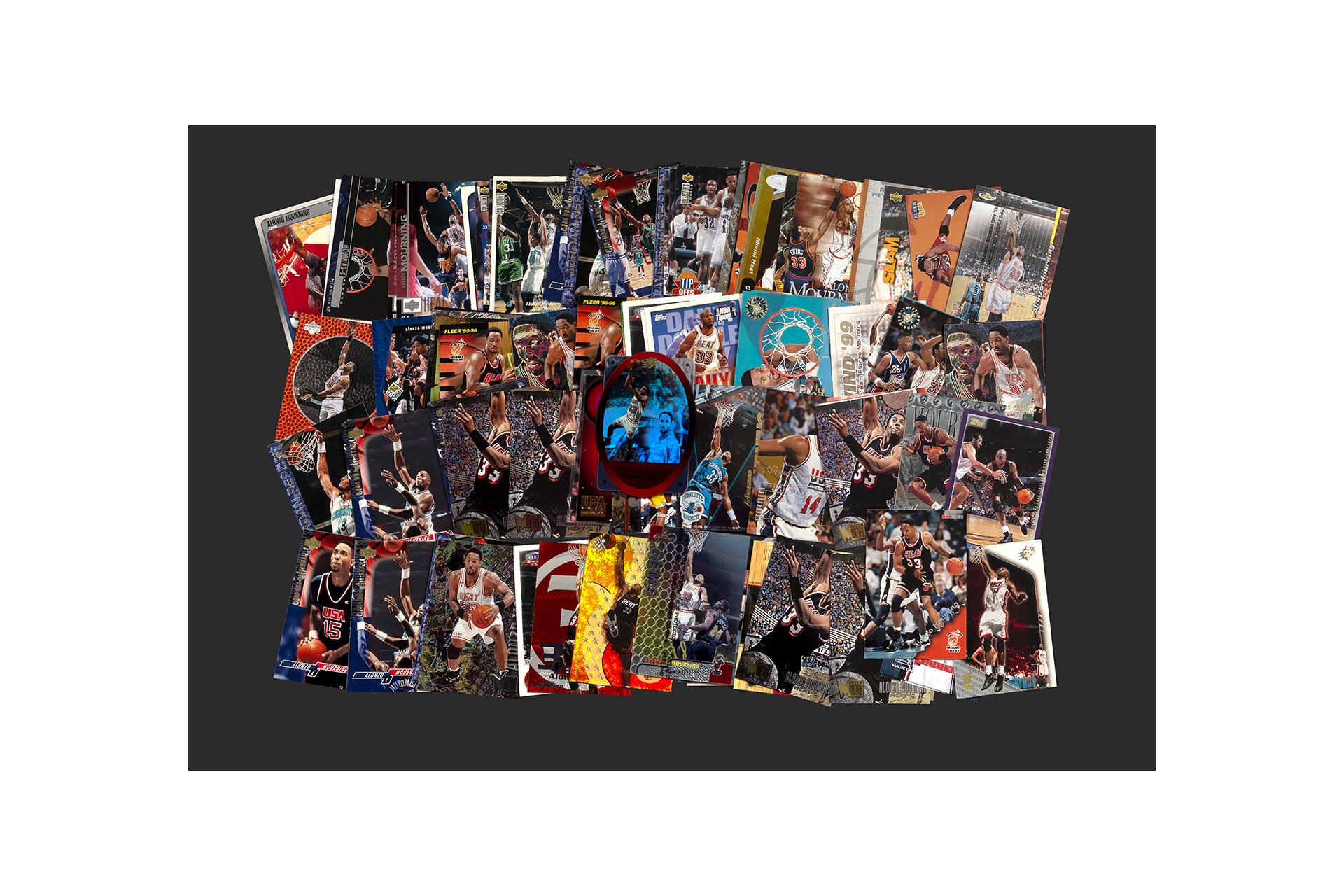 NBA : collection de cartes Alonzo Mourning années 90-2000. Toutes licences (Panini, Upper Deck, Fleer, Topps, etc.).