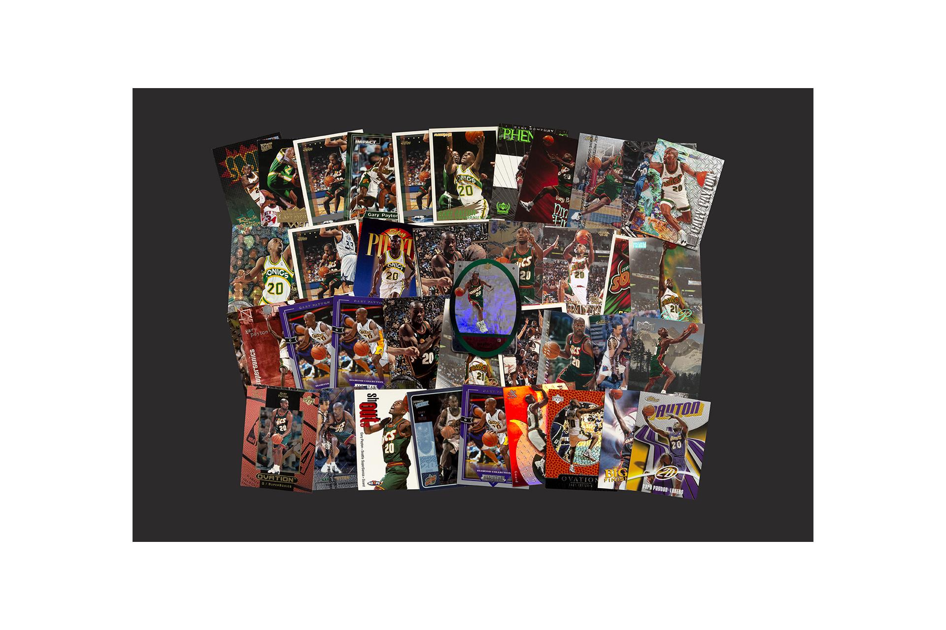 NBA : collection de cartes Gary Payton années 90-2000. Toutes licences (Panini, Upper Deck, Fleer, Topps, etc.).