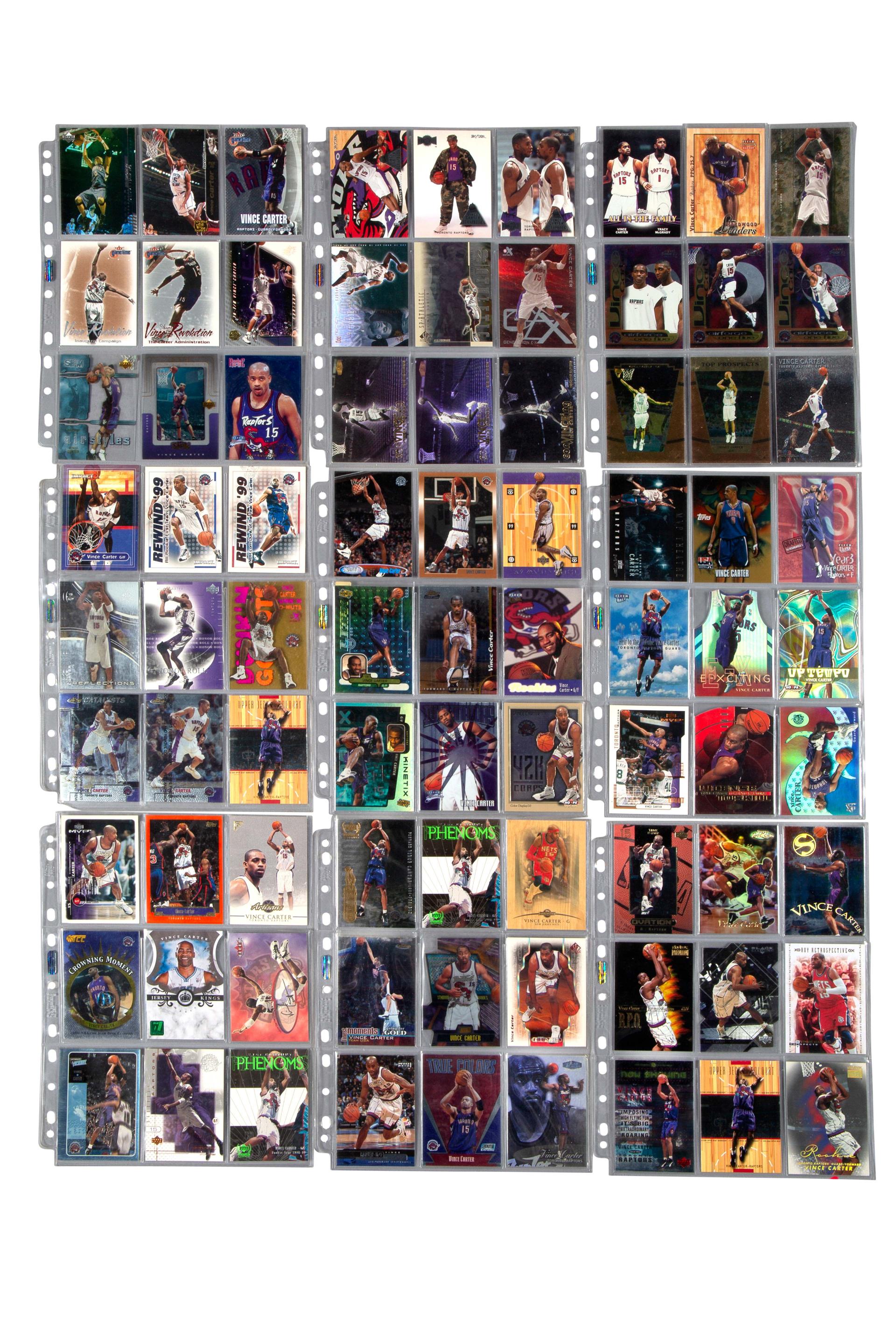 NBA : collection de cartes Vince Carter années 90-2000. Toutes licences (Panini, Upper Deck, Fleer, Topps, etc.).