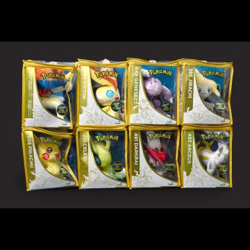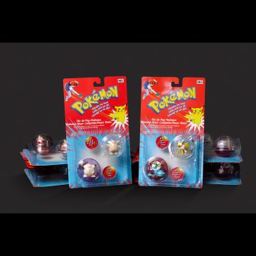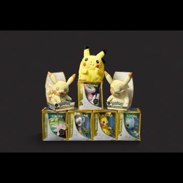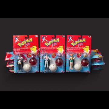 Lot de 11 figurines Pokémon scellées dans leur coffret, 3 figurines parlantes, 15 peluches neuves, cassettes vidéos. Etat : scellé sauf les cassettes vidéos. Langue : français.