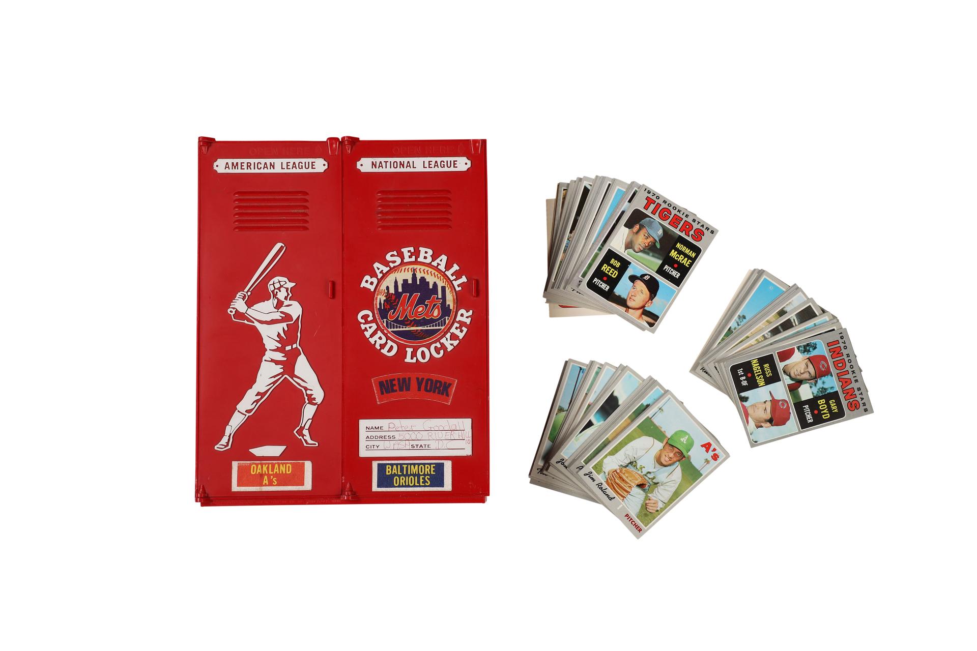 Lot de plus de 250 cartes différentes 1970 Topps dans son coffret type “vestiaire américain”, Baseball card Locker