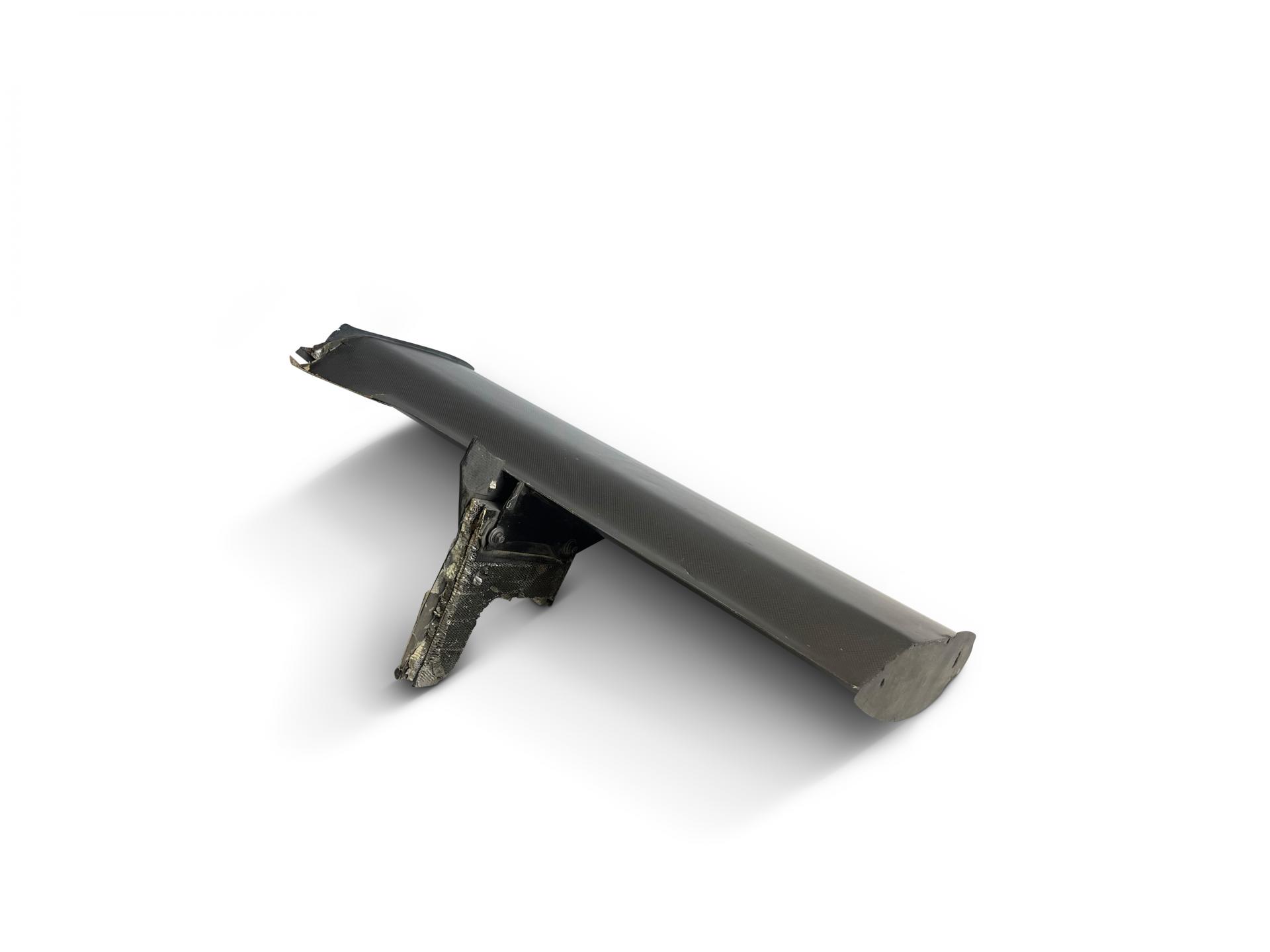 Aileron arrière en carbone provenant de la Formule 1 Alfa Romeo 184 T de Riccardo Patrese. Celui-ci a été arraché lors du Grand Prix de Moncao 1985 lorsque Patrese entre en collision avec la Brabham BT84 de Nelson Piquet.