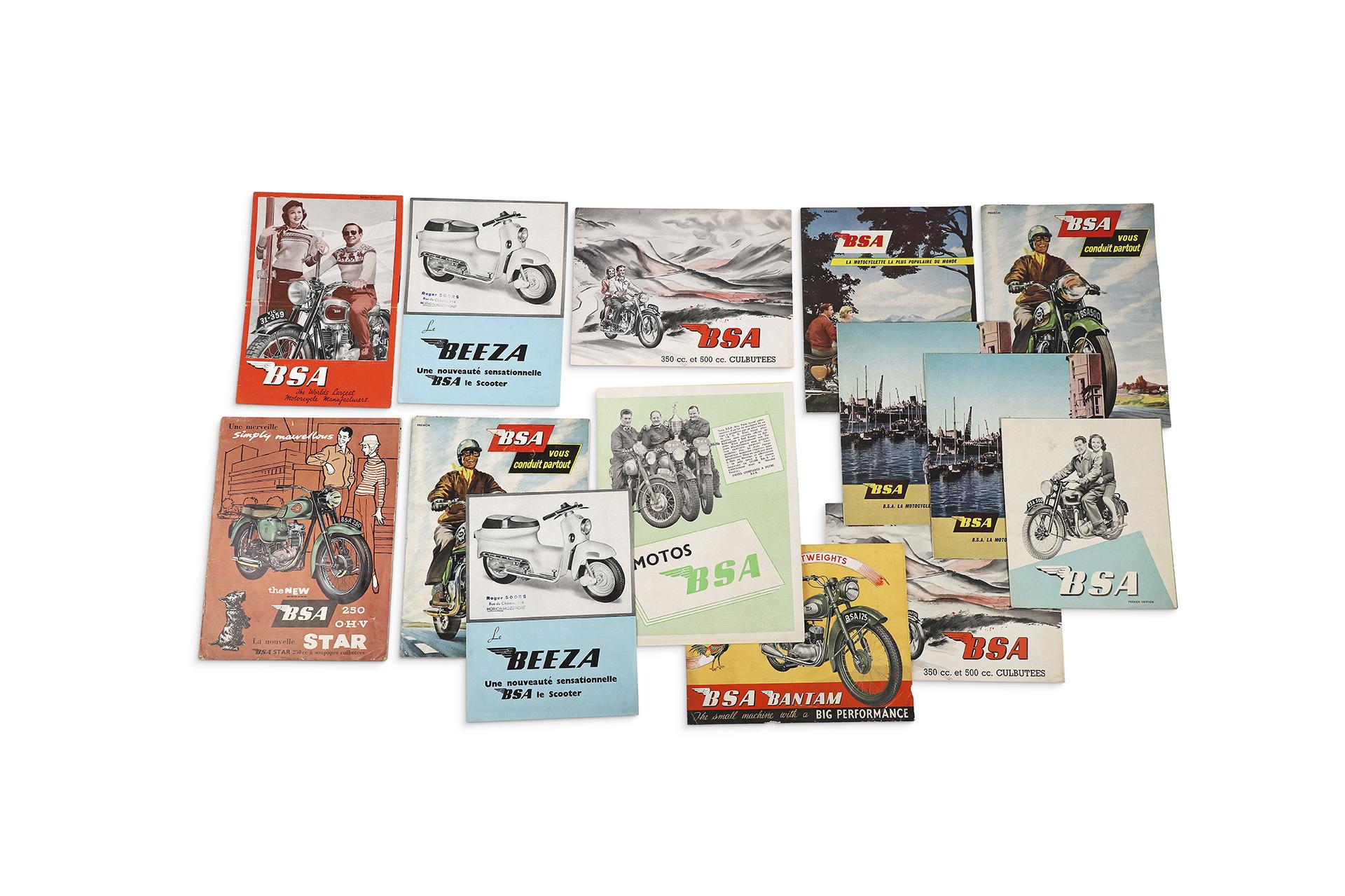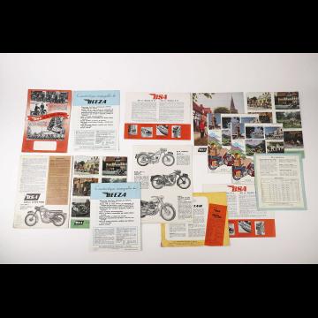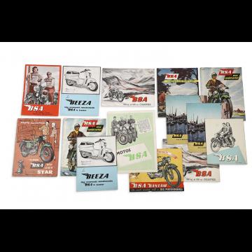 Intéressant ensemble de 14 catalogues et feuillets des motos BSA.
