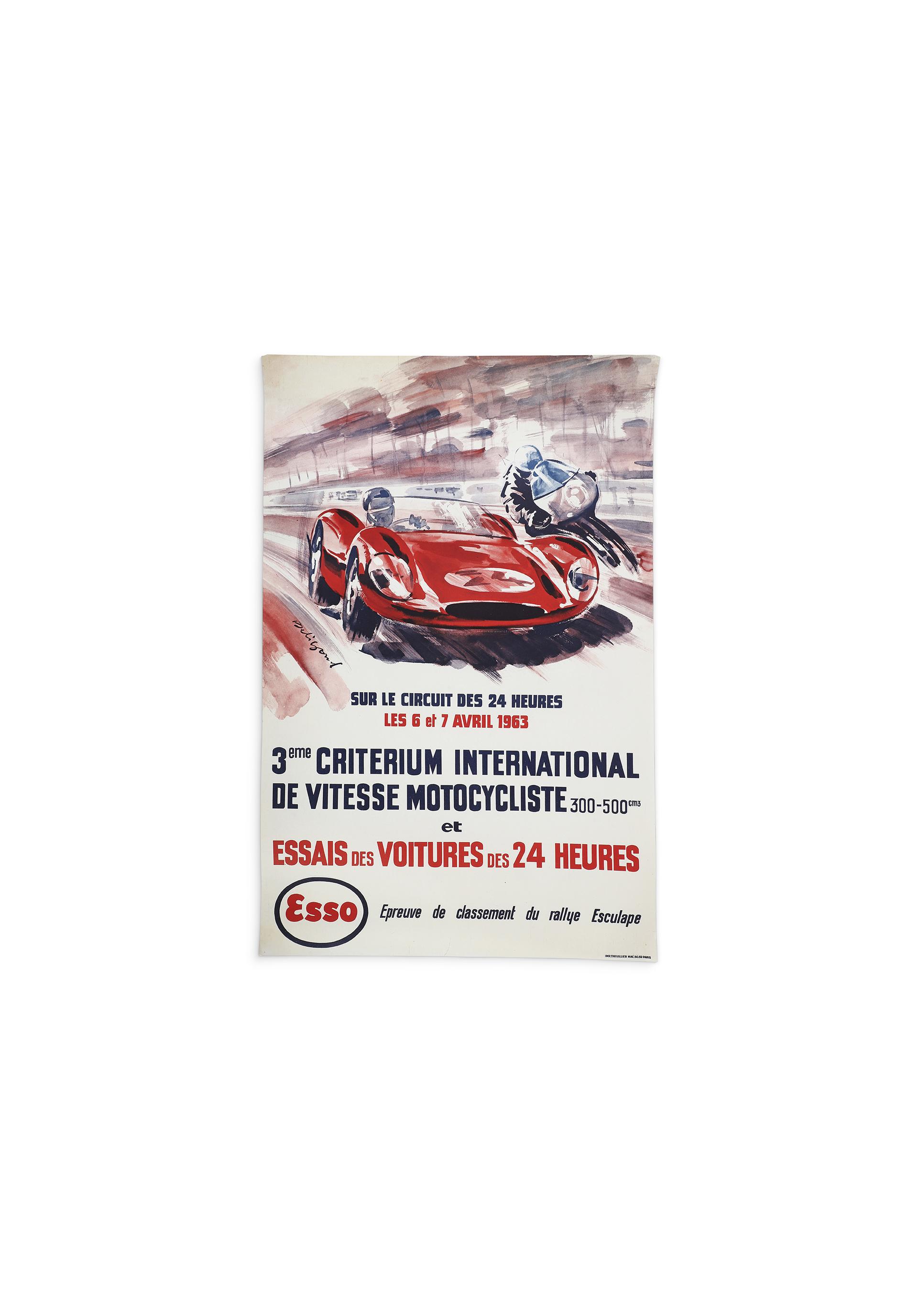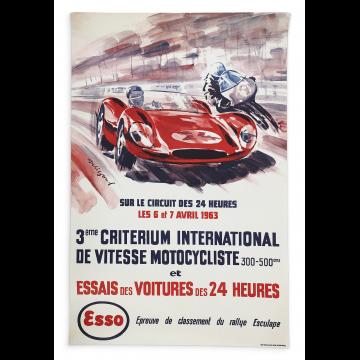 1963 : Criterium international de vitesse motocycliset et essais des voitures des 24 heures, Imp. Thivillier, dessin Beligond, très bon état