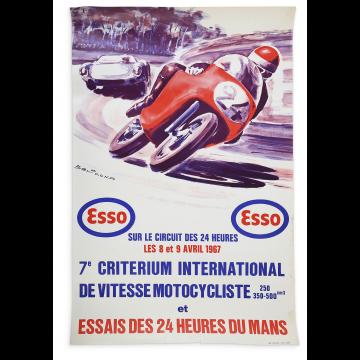 1967 : Criterium international de vitesse motocycliset et essais des voitures des 24 heures, Imp. Thivillier, dessin Beligond, légères taches et déchirures en bordure