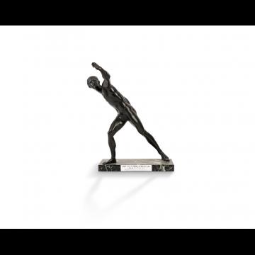 Sculpture en bronze à patine noire, reposant sur un socle en marbre
