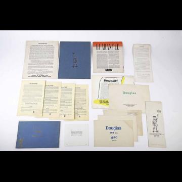 Intéressant ensemble de 16 catalogues et feuillets des motos Douglas.