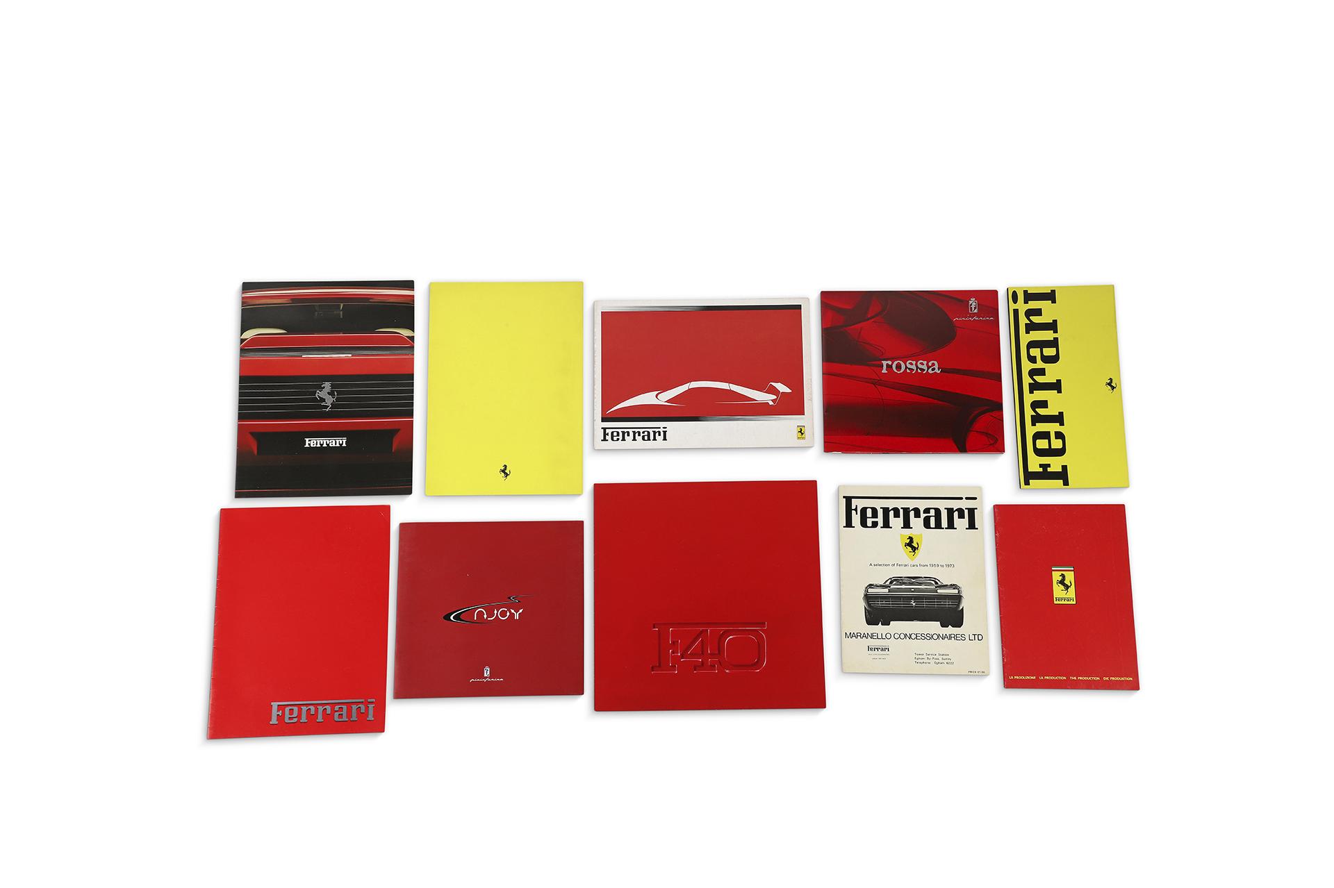 Lot de 10 catalogues Ferrari présentant différents modèles dont la F40