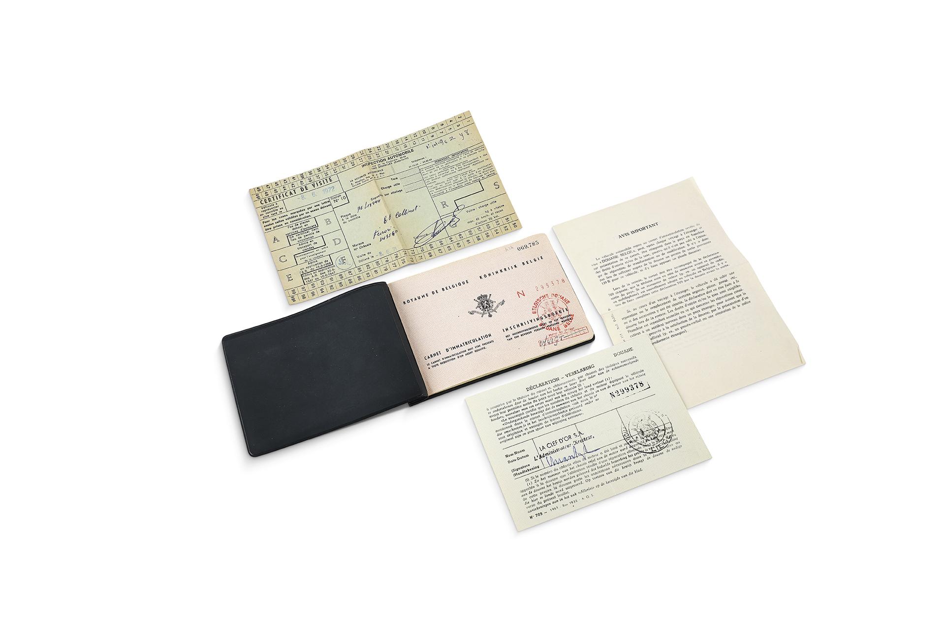 Carnet d'immatriculation belge de la Ferrari 250 GT châssis 2743GT immatriculée le 6 octobre 1961