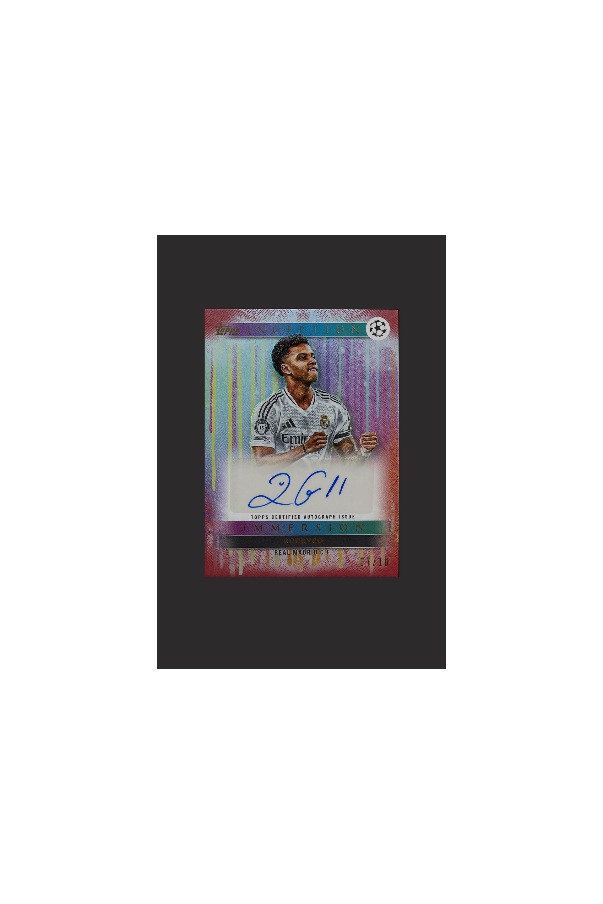 Topps Rodrygo Real Madrid numérotée 07/10 avec autographe. Topps Inception Immersion UCL.
