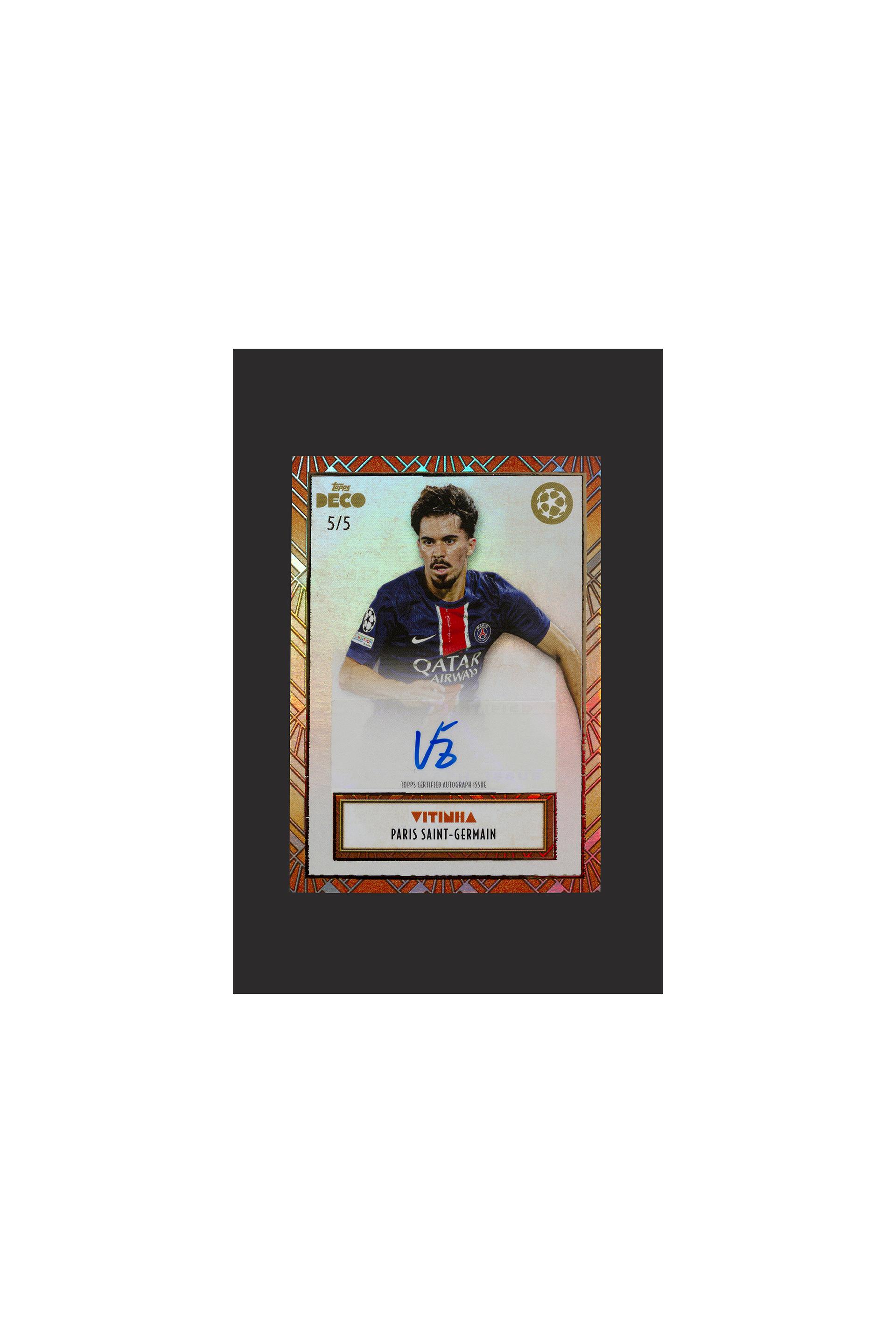 Topps Vitinha Paris-Saint-Germain numérotée 5/5 avec autographe. Topps Deco UCL.