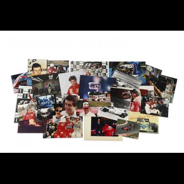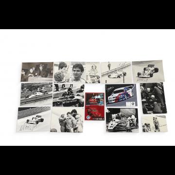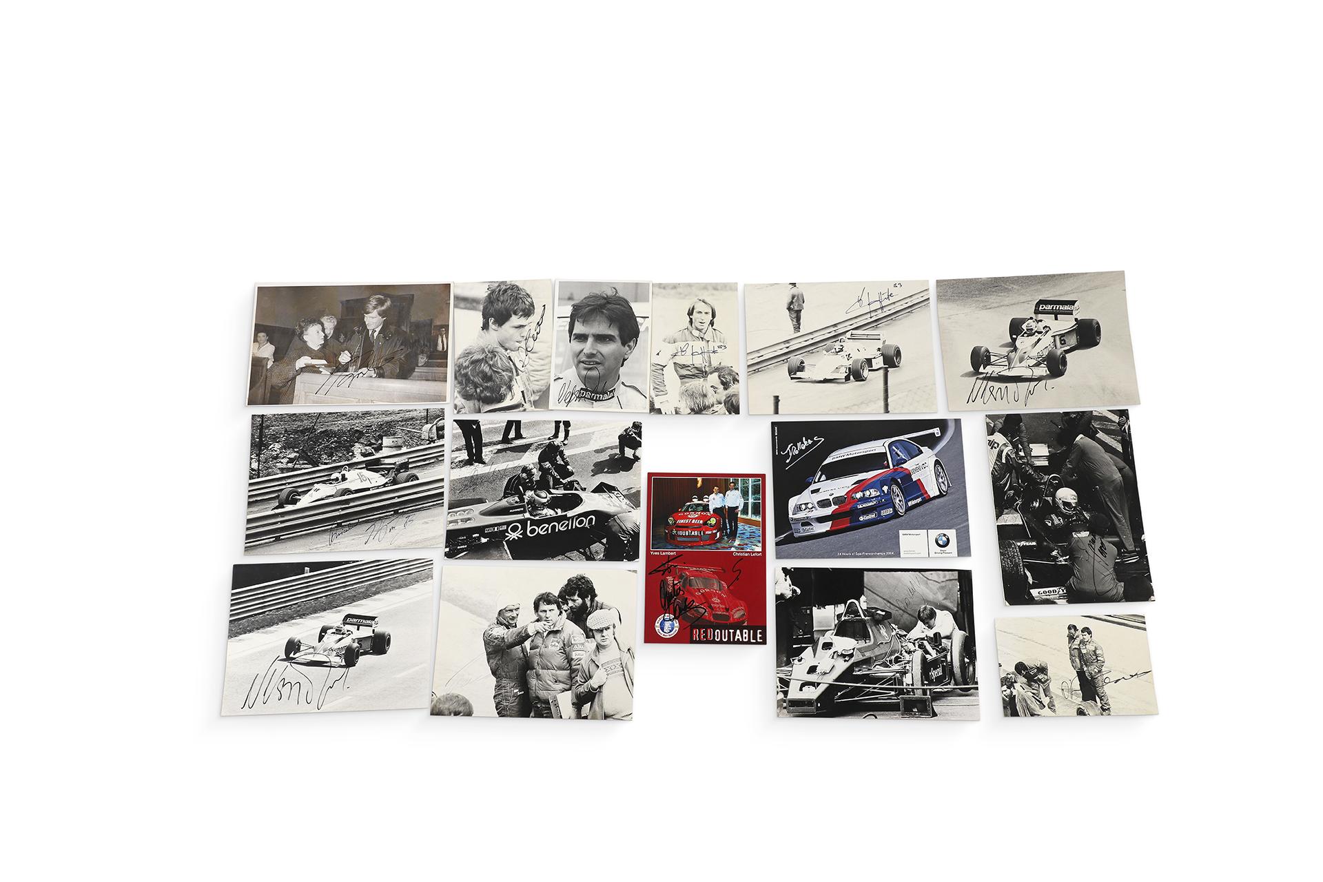 Lot de 15 photos et cartes dédicacées par les pilotes dont Niki Lauda, Jacques Laffite, Nelson Piquet, Alboreto…