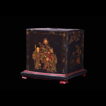 CHINE - Boîte en laque noir à décor doré et rouge de dignitaires.