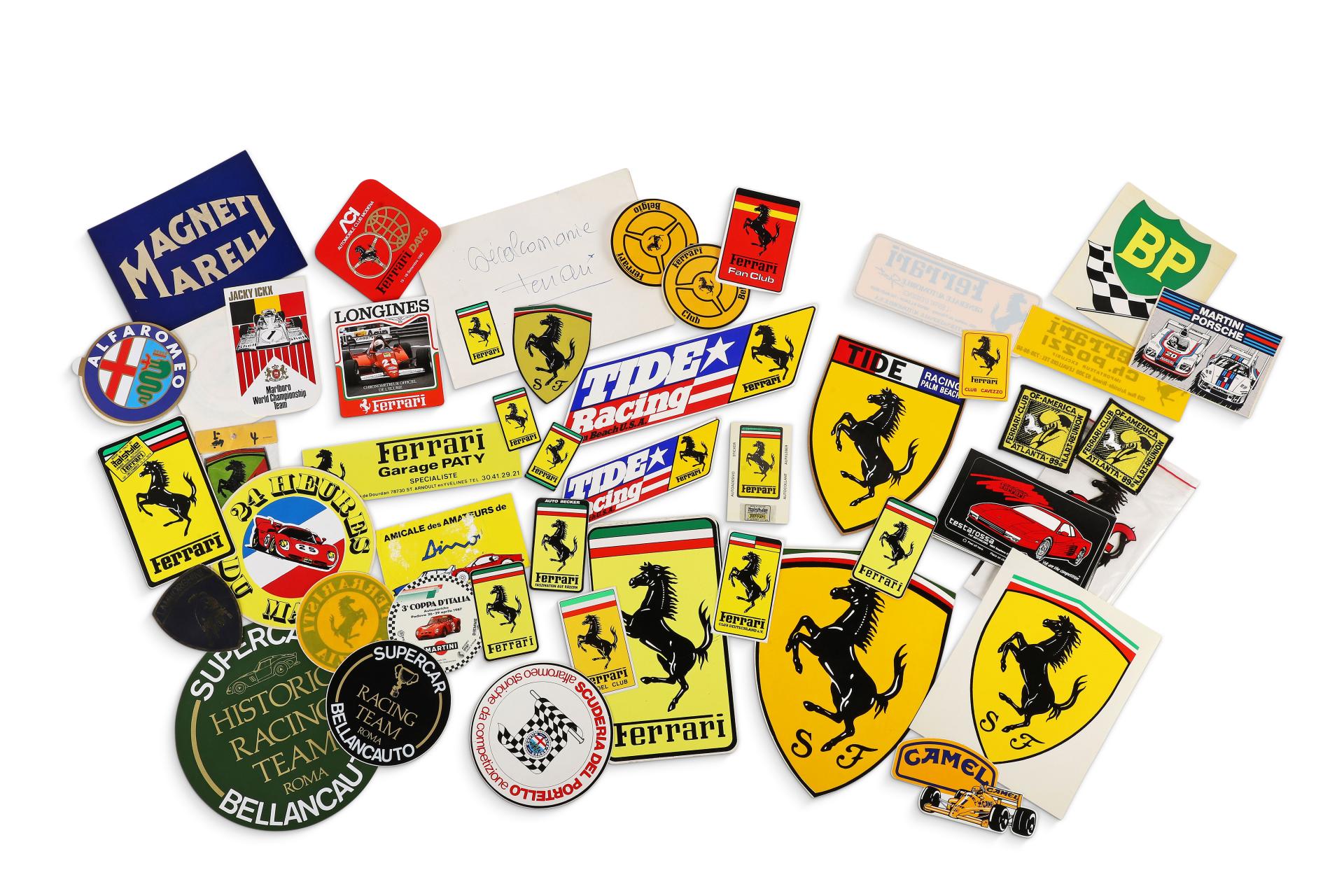 Lot d'autocollants Ferrari, Camel, Martini Racing, BP, Magneti Marelli, Alfa Romeo, Marlboro…