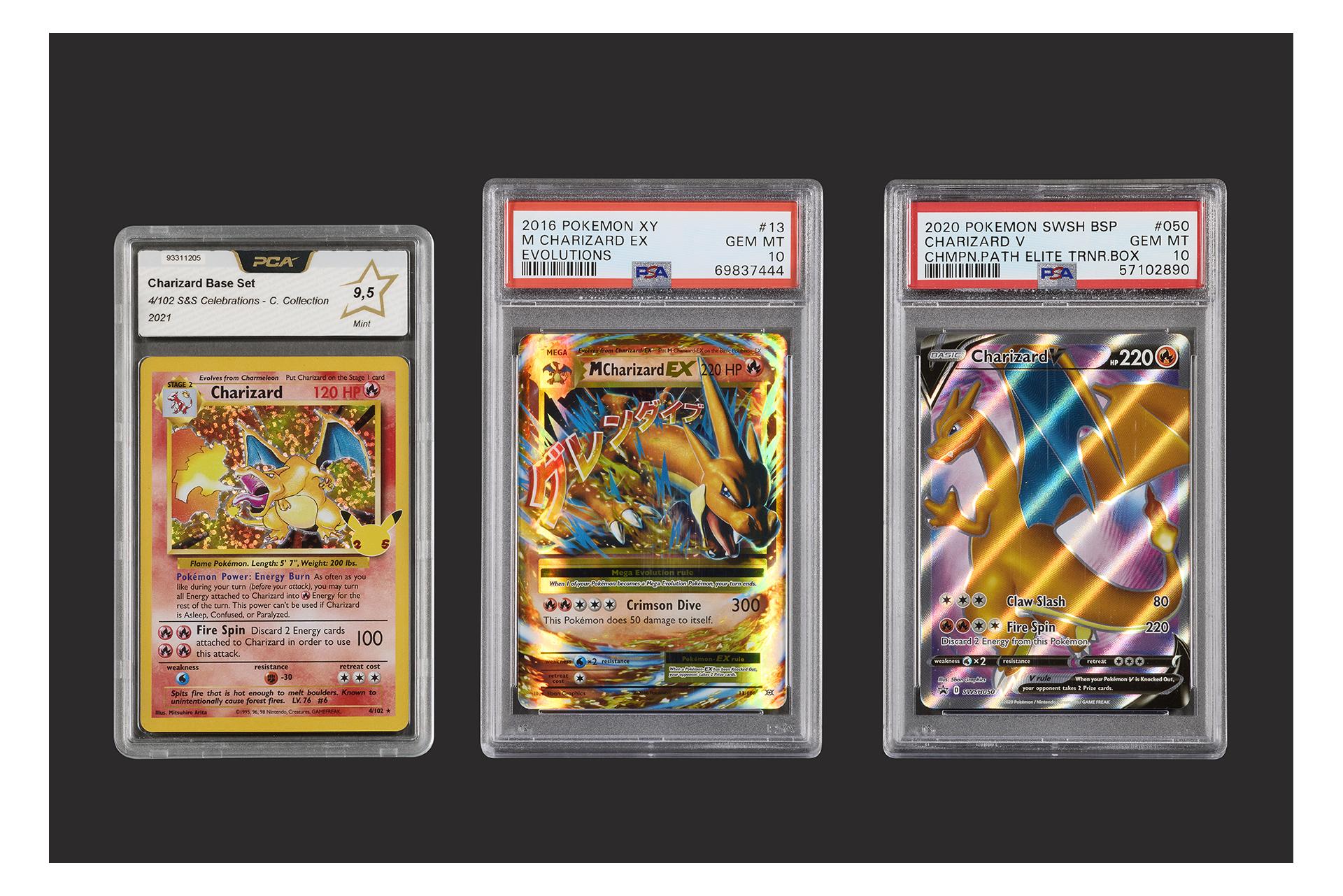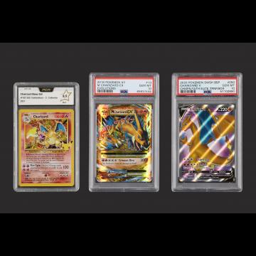 3 Charizard gradés Etat : gradées PSA 10 et PCA 9 Langue : anglais