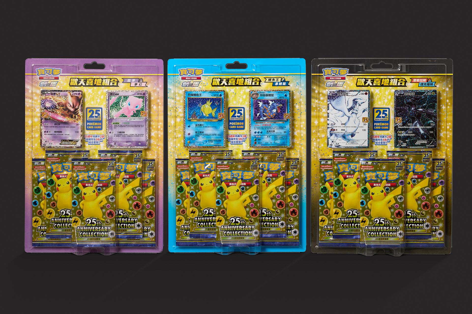 Trois packs scellés 25th Anniversary Collection Etat : scellés Langue : Chinois. 3 visuels différents, 5 boosters par pack.