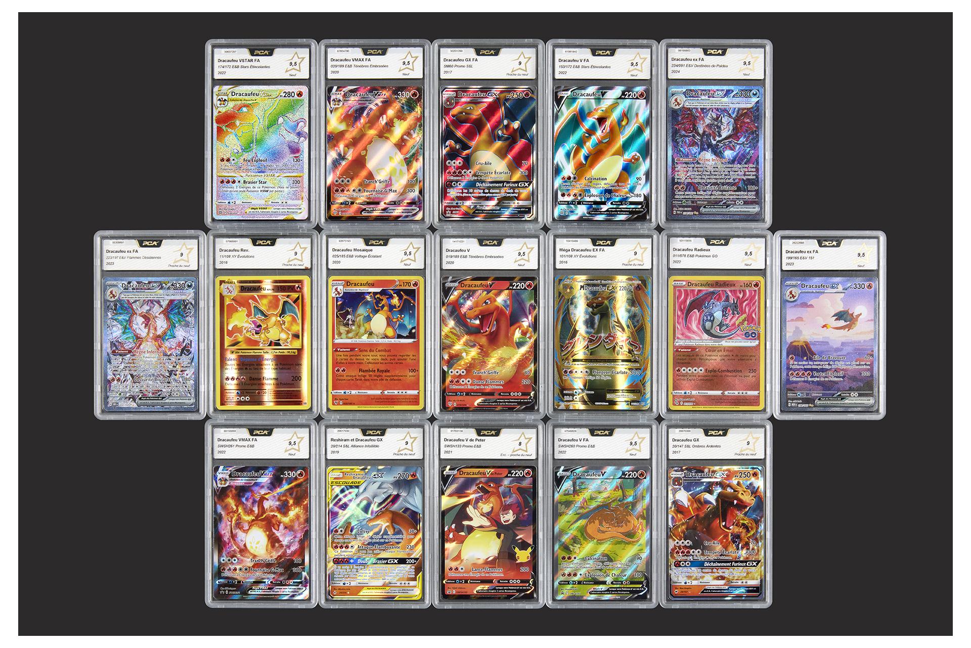 Collection de Dracaufeu gradés PCA (17) et non gradés Etat : en l'état Langue : français