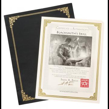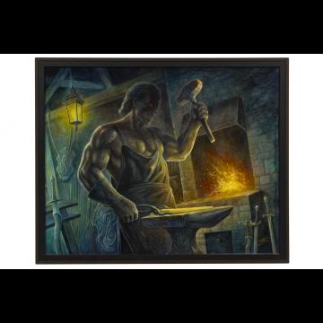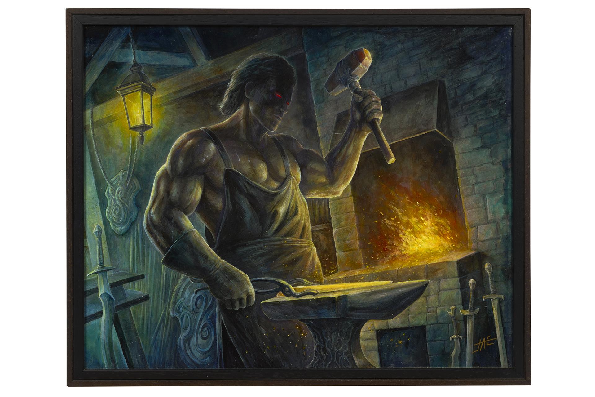JASON A. ENGLE, "Blacksmith's skill", mixed media original signée en bas à droite, 40 x 50 cm (première fois que le personnage Dakon Dark Blade est représeté sans son casque). Avec son certificat d'authenticité