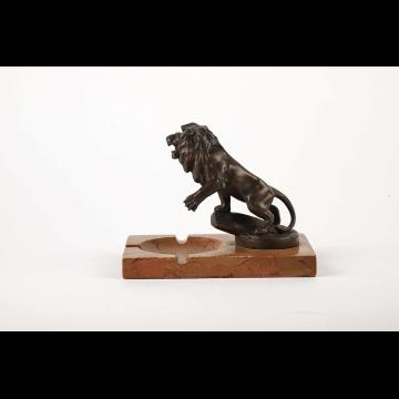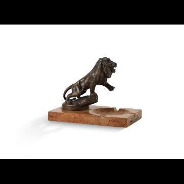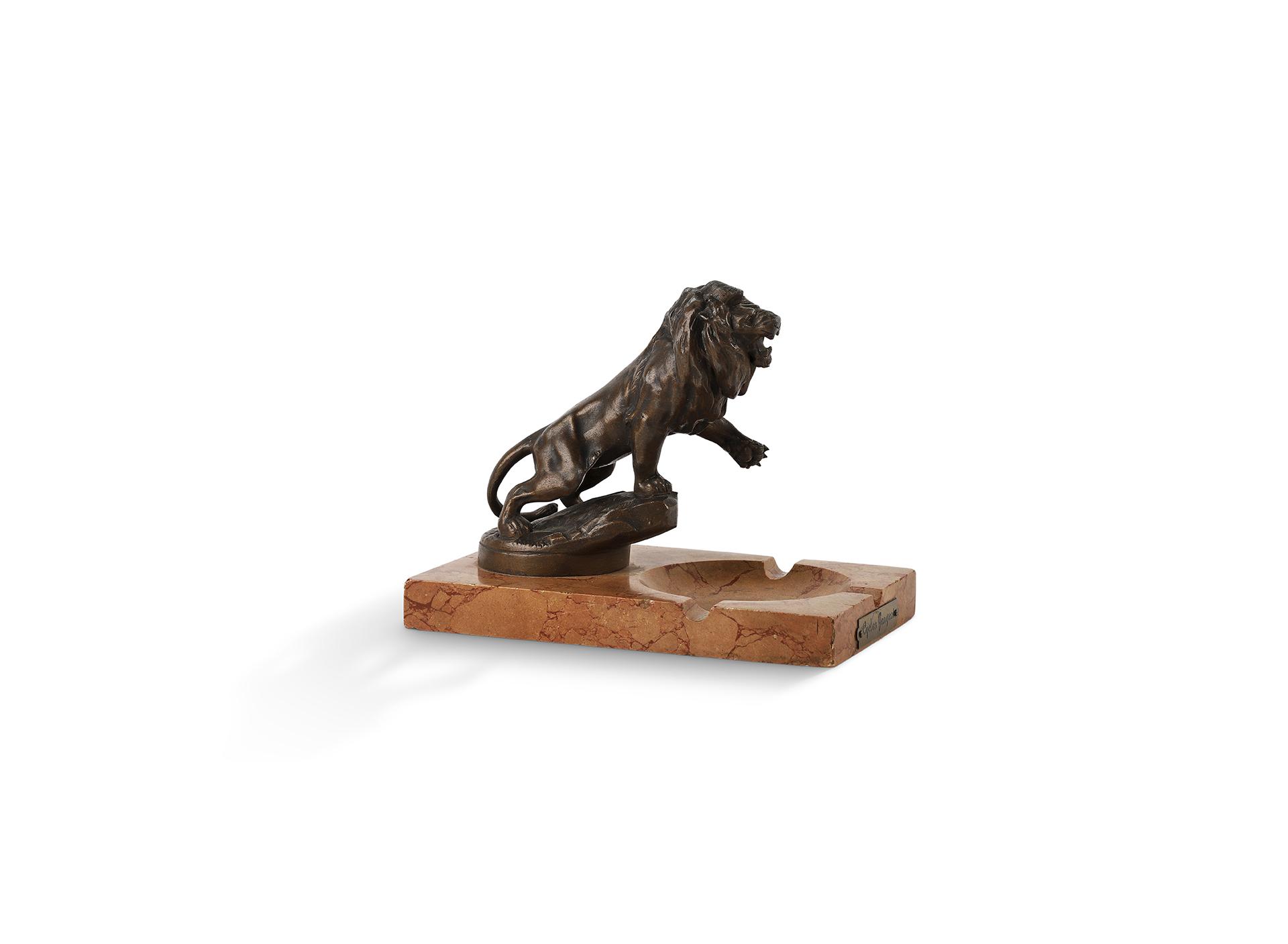 Mascotte Peugeot sur cendrier, plaque "Cycles Peugeot", signée