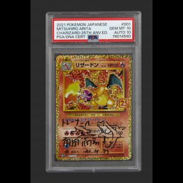 Lot n°211Pokémon : Charizard Base Set 25th anniversary signature et dessin Arita PSA 10