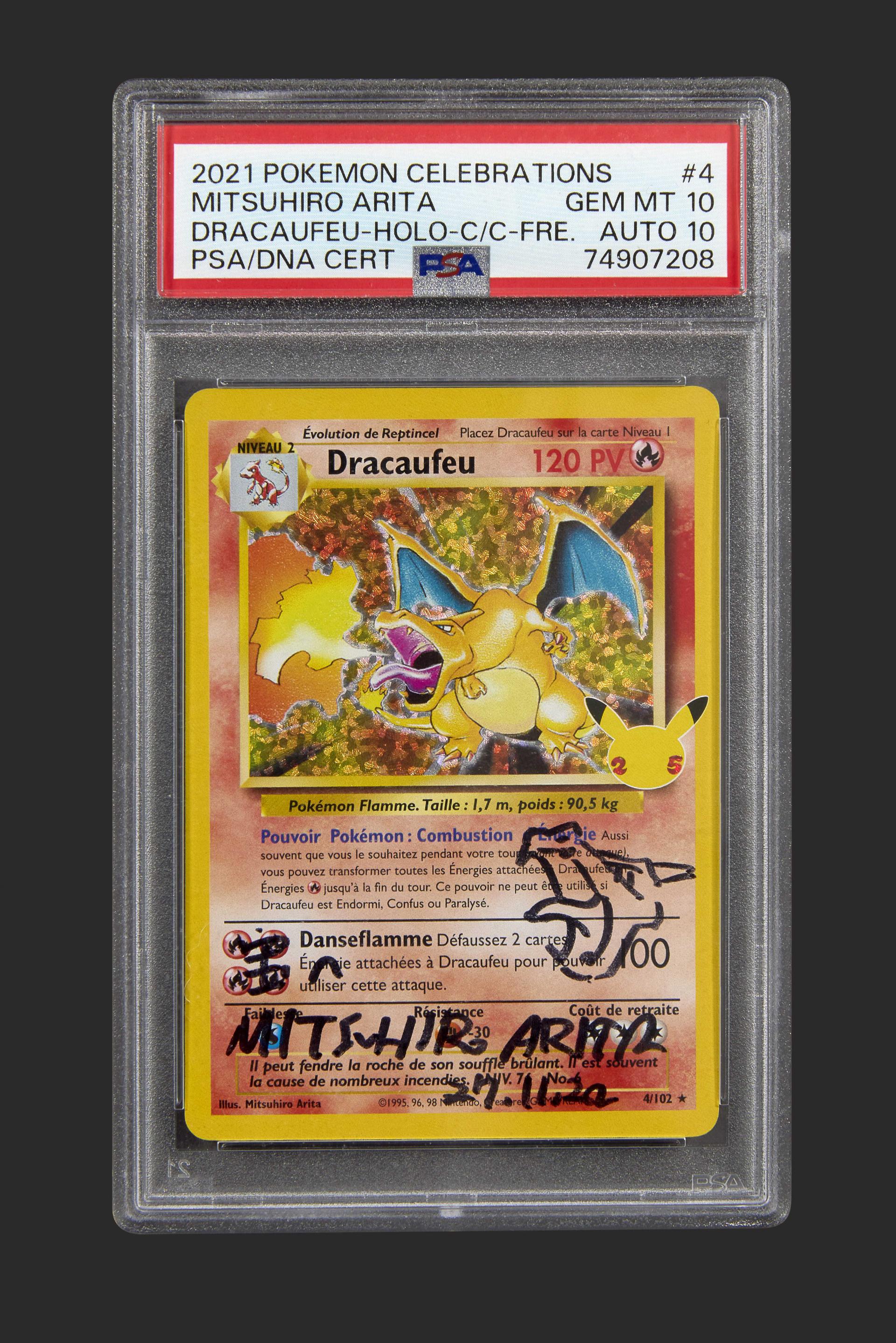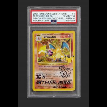 Lot n°212Pokémon : Dracaufeu Celebrations signature et dessin Arita PSA 10