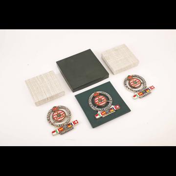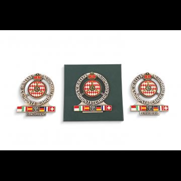 Lot de 3 badges émaillés dont un équipier et un concurrent dans leurs boîtes d'origine