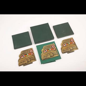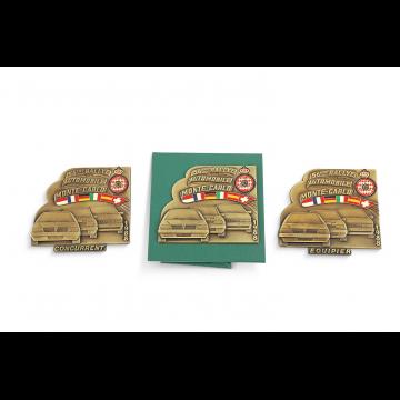 Lot de 3 badges émaillés dont un équipier et un concurrent dans leurs boîtes d'origine